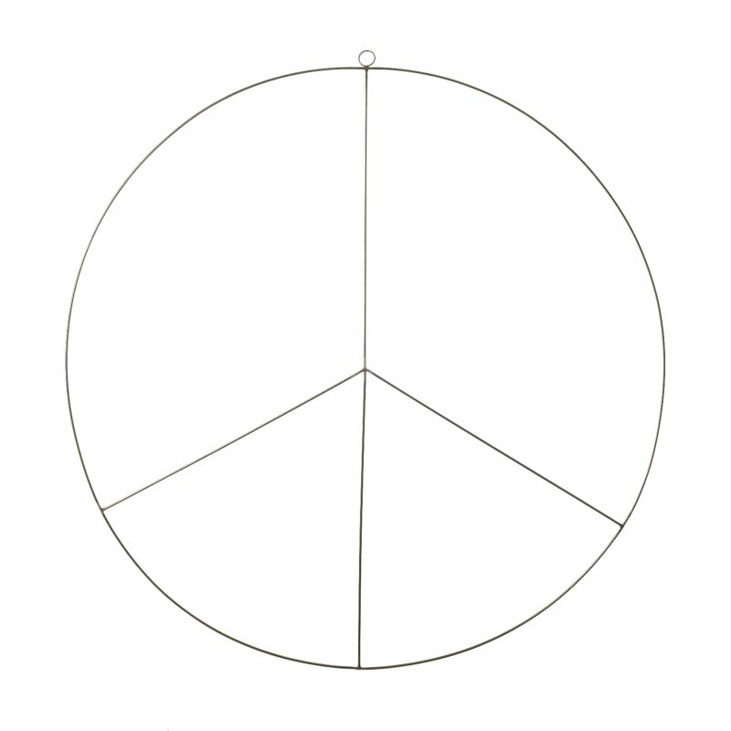 This wire peace wreath is a statement piece for any large wall or door. It can be hung as is, or botanicals and other swag can be added to make it festive!